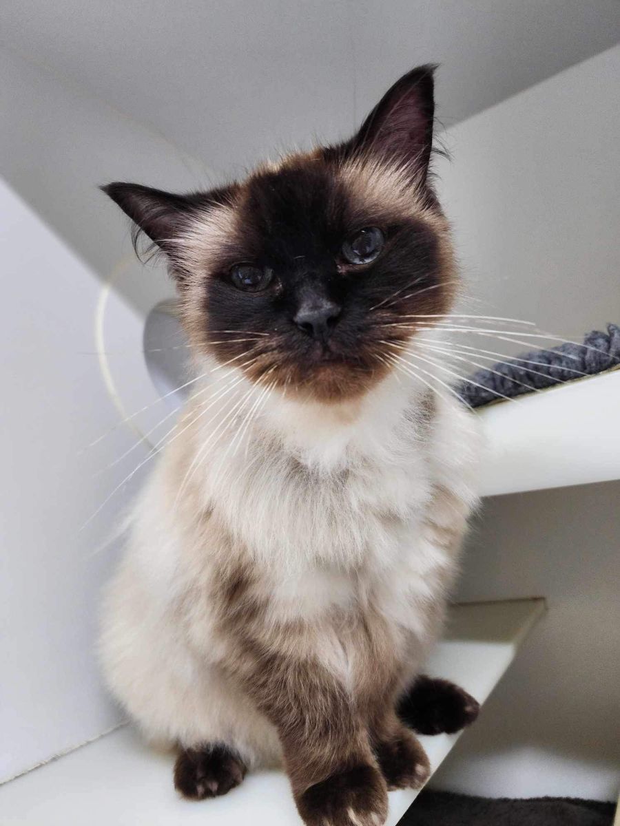 Meet Oscar, our affectionate, lap-loving cat who enjoys nothing more than lounging around with his humans. Oscar loves quality time with his human friends and is always ready to welcome you with his comforting purr and a friendly head bump. He is a wonderful companion who brings serenity to every moment spent with him.
