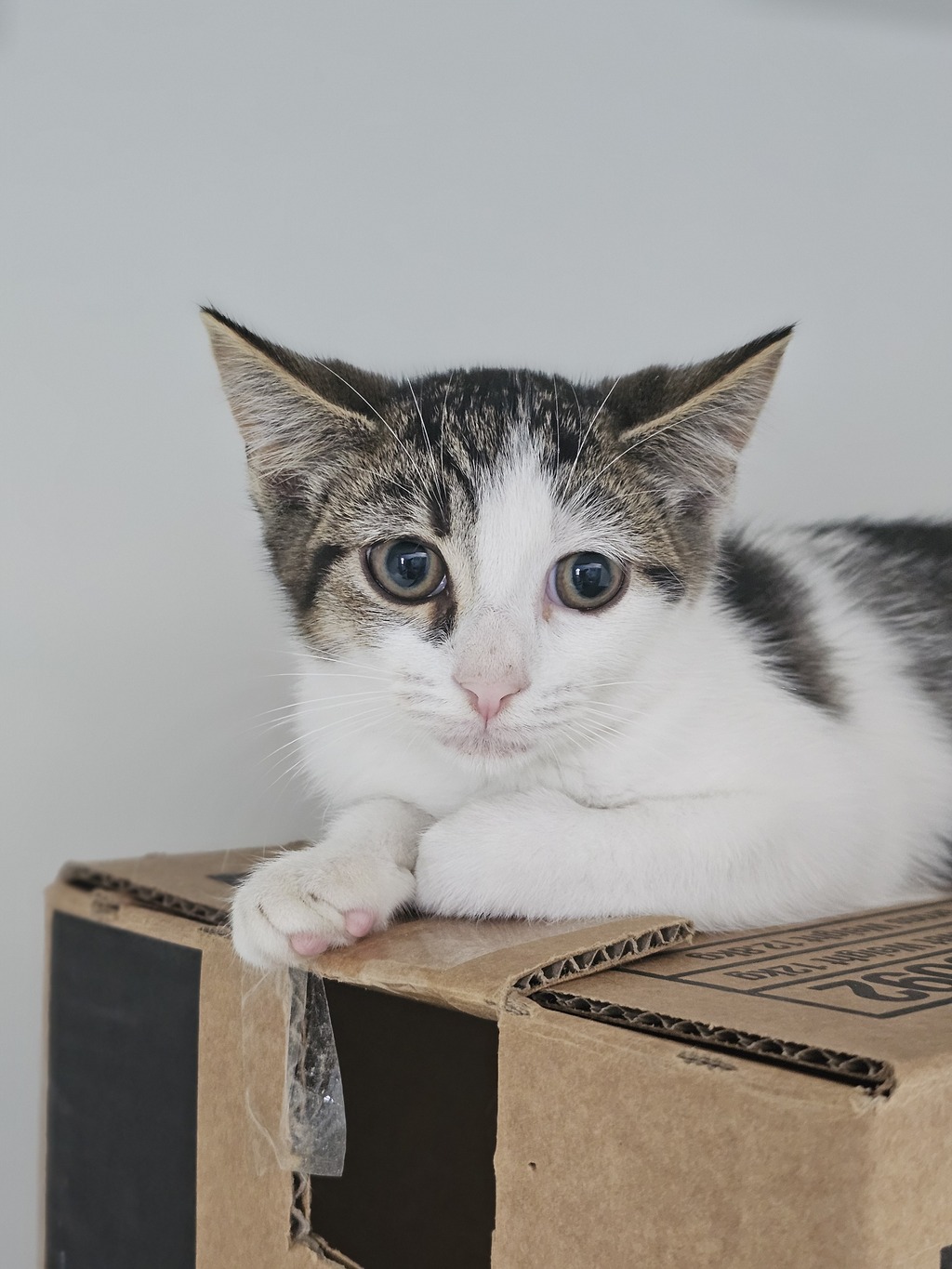 Hi, I'm Callahan. I am looking for a kind and patient person or family to show me that humans are amazing. When I was younger, I didn't see too many people so I am still learning that humans are the providers of my delicious snacks! Once I get to know you, my shyness will turn into trust, and I'll be right there beside you, ready to share soft purrs and quiet moments. So, if you're looking for a gentle and quiet furry friend, please consider adopting me!