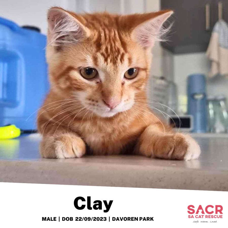 Although he can be a little shy initially, Clay has a heart bursting with affection. He finds comfort and builds confidence through cuddles, helping him settle in quickly. Playtime and exploring are some of his favourite ways to spend his day. His curiosity and playful persona make the little corners of your home all the more interesting. And with his affinity for climbing, don't be surprised if you spot him at the top of cupboards and shelves, watching over his domain like a watchful king.
