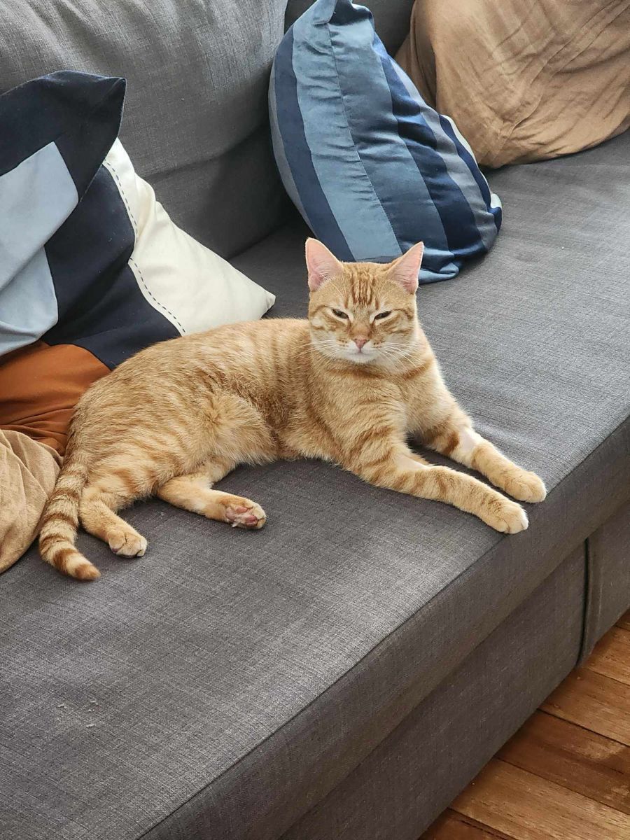 He is also very confident and very curious and will step out of a cat carrier like he’s been living there the entire time.