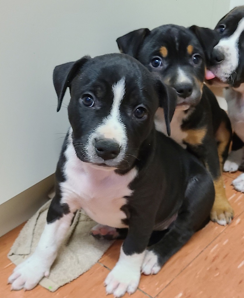 BREED: Mixed – we don’t know the parentage and consequently don’t know their adult size but we think around medium, we also think these puppies will have some American Staffordshire Terrier in their mix.
