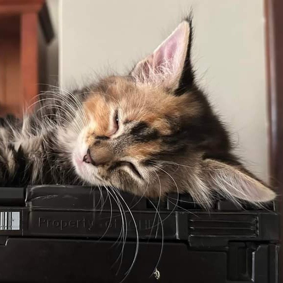Callie is a happy and playful ball of fur, enjoying the antics of her fellow litter mates. She readily purrs when given attention. Callie has some beautiful markings including her interesting tail that looks like it’s been dipped in paint or perhaps could double as a fishing lure.
