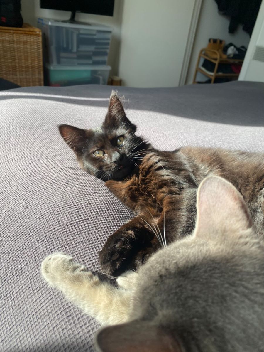 When it comes to food, Whitman flourishes on a raw food diet, particularly Big Dog Barf Turkey Raw Cat Food and Royal Canin biscuits. He has a sensitive tummy but is also able to tolerate Royal Canin wet food. The perfect mix of exploration, playfulness, and affection, Whitman's diet is simple and easy to manage.