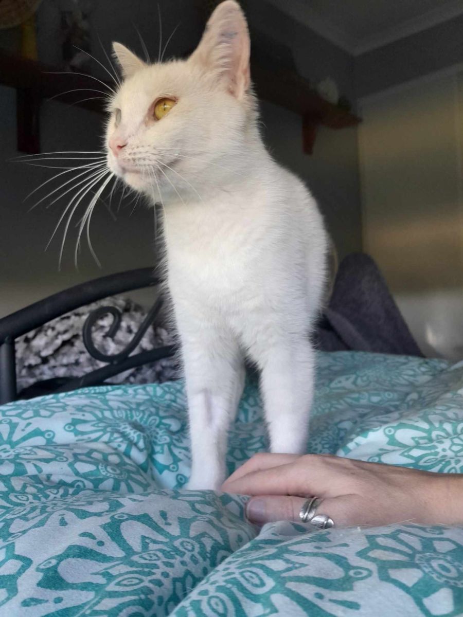 She has unique eyes and is completely white so requires an indoor home where she can be out of the harsh sun. She is a happiest when curled up in a cosy place and has a human by her side so she can lap up all of your love and attention.