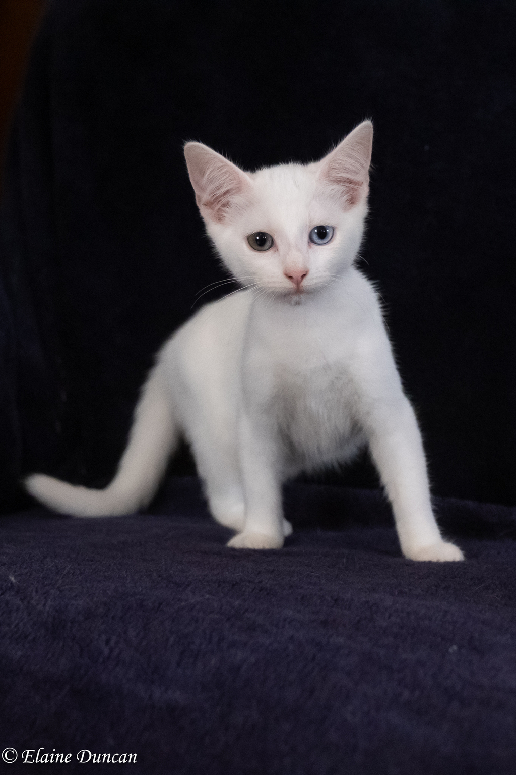 Pearl has beautiful pure white short soft fur and striking eye colours - one blue and one half blue and half golden brown - and is the very definition of sweetness. While she can be a little shy at first, her smoochy side soon shines through and she will begin purring instantly when receiving pats and attention.