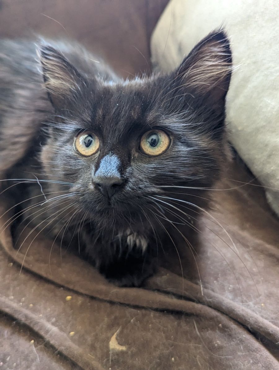 He is still easily spooked by loud noises, but gets used to new environments quickly. He is incredibly social with other cats and even gets along well with his canine foster brothers.