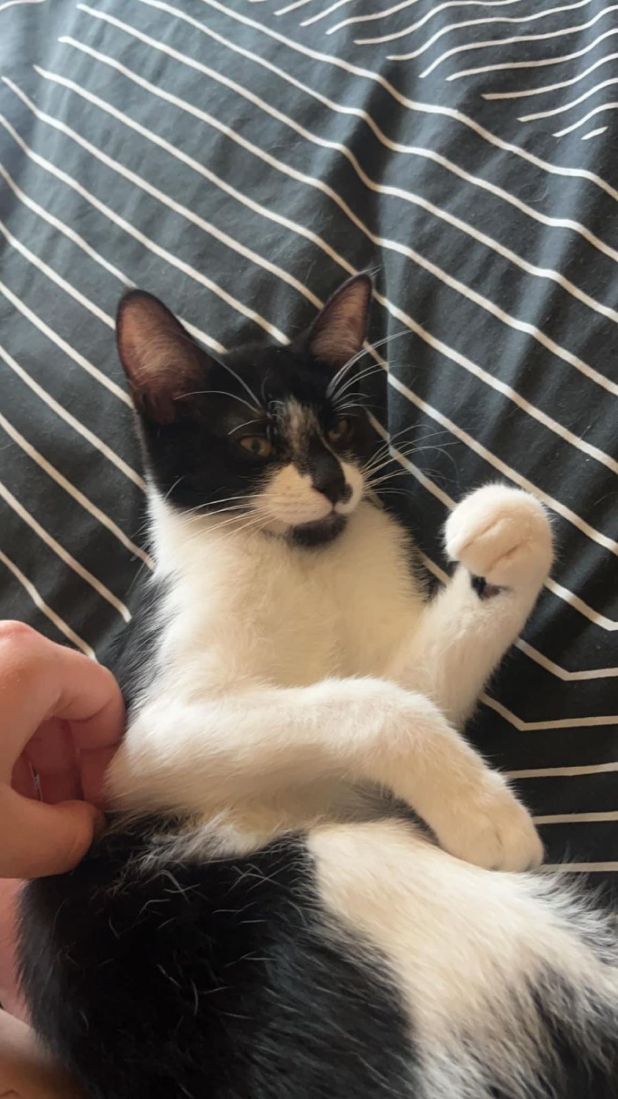 He is super playful with other cats, loves racing round playing, pouncing and wrestling when he can.