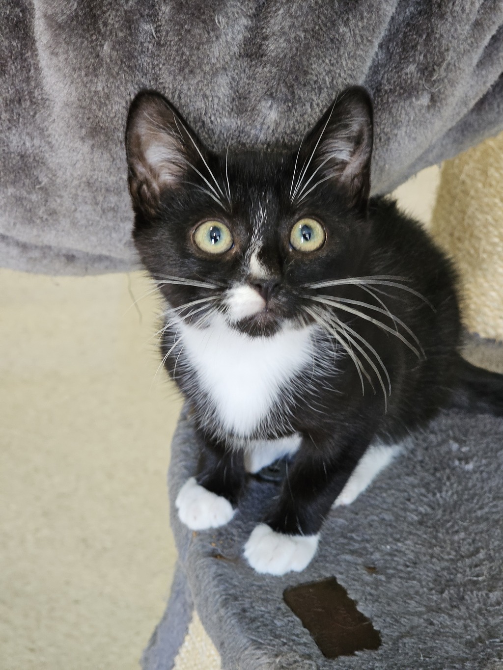 Hey there, I'm Grinch. I'm a friendly and affectionate kitten who would suit most homes! My playful paws are always ready to pounce on anything that moves. I love playing with wand toys and mysterious shadows on the wall! When I'm finished playing, I love nothing more than finding a warm lap to curl up in.
