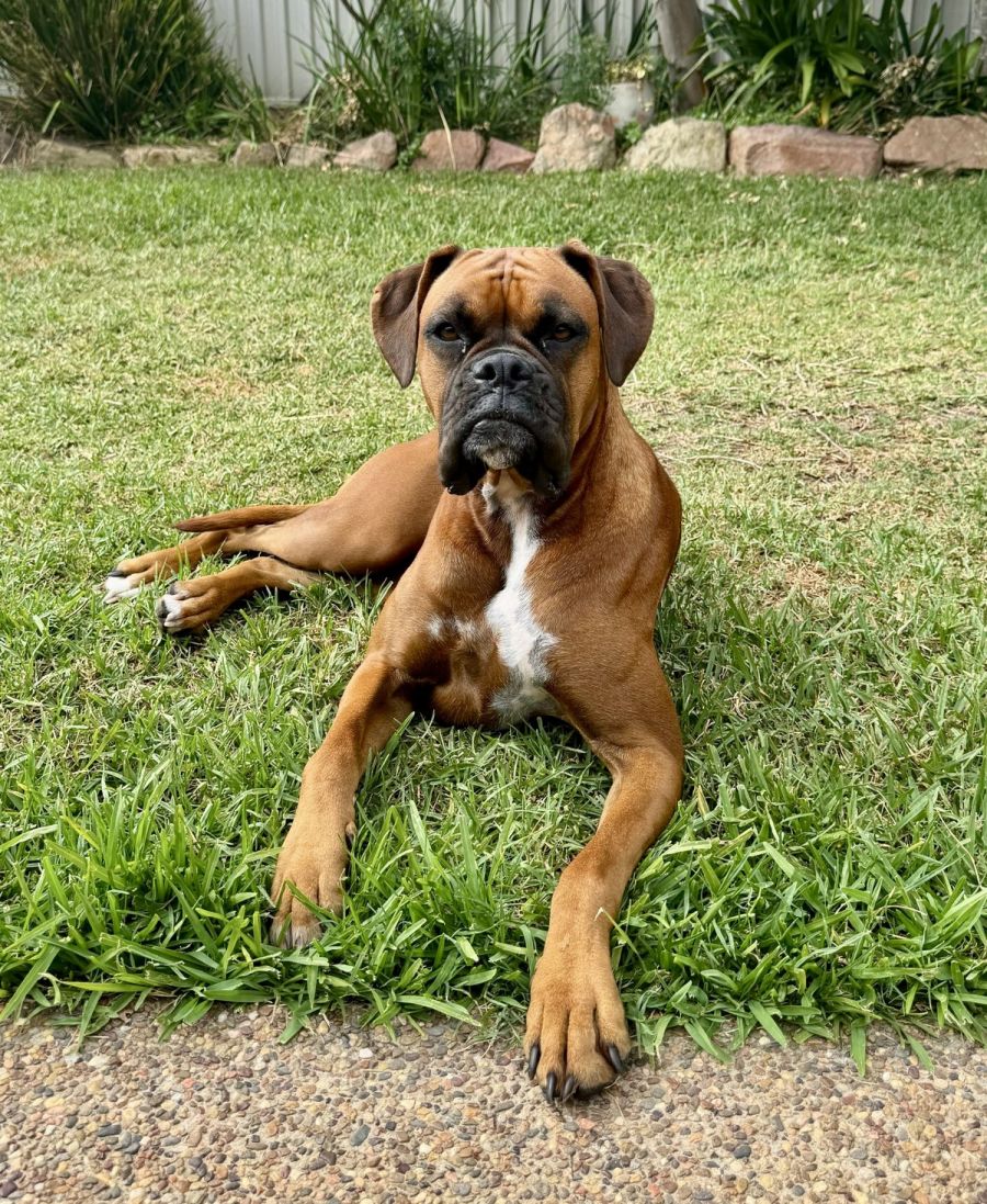 Carli is a lovable, loyal companion who is all about pats and big boxer cuddles, on your lap of course. She loves playing with toys, chewing on sticks and bones.