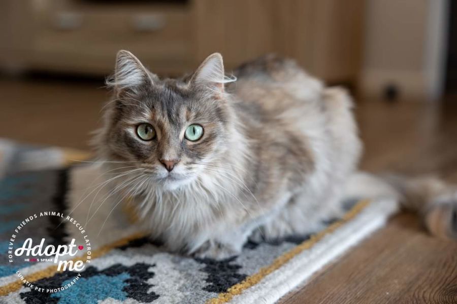 April is a beautiful affectionate young lady with a beautiful long coat that she maintains well. She loves to curl up on a lap or next to someone for pats, purrs and ear scratches.