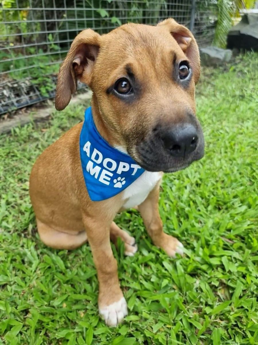 Hello, I'm Queenie, a Staffy mix puppy full of LOVE! My tail wags for you so much, that my whole body joins in – even if you've only been away for a short while. I adore humans and am looking forward to being your devoted companion. Independent, confident, and ready to be your best friend!