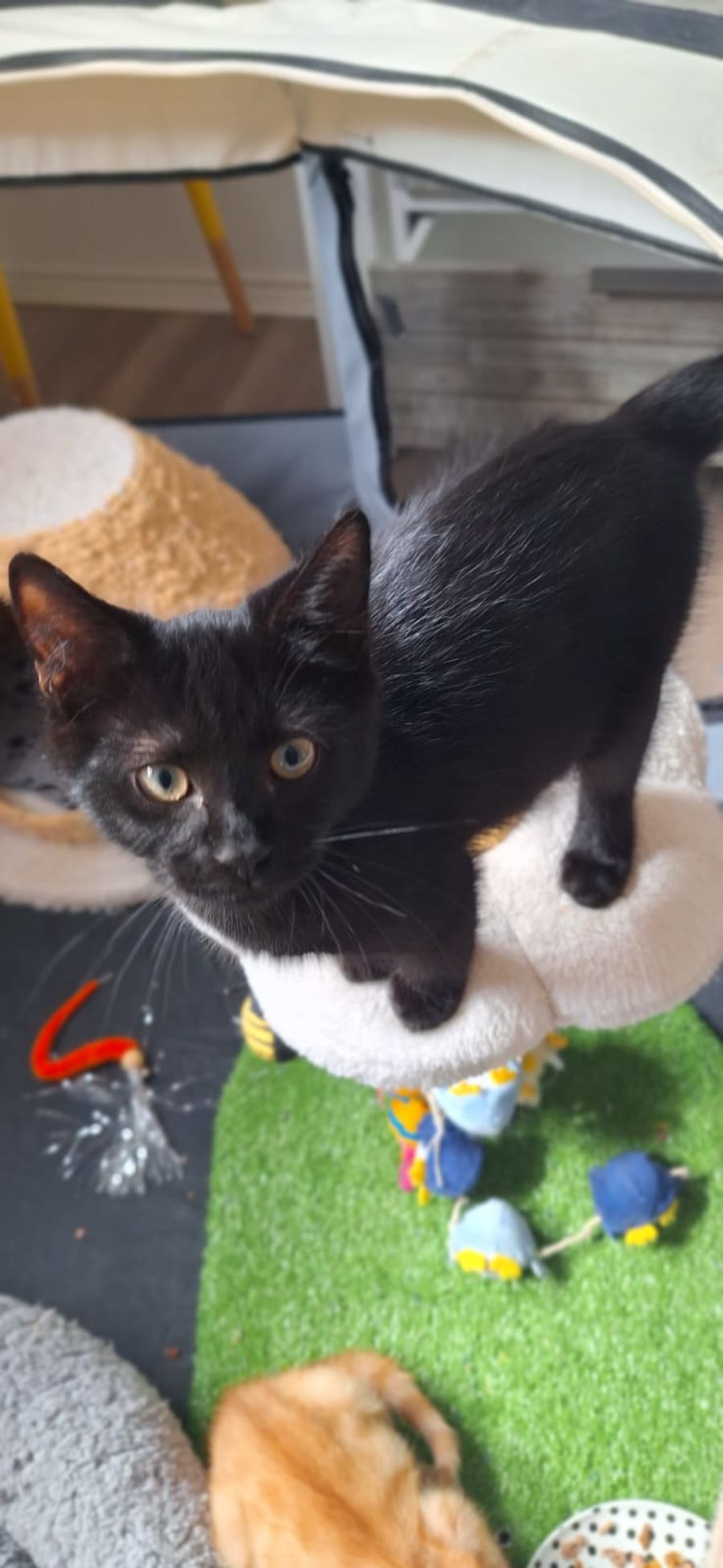 Co-existing with other pets is second nature to Shadow. He gets on well with his fellow feline friends and dogs, showing his adaptable. This kitten is not experienced with children yet, but as most kittens do, he will likely adapt to a family lifestyle quickly given his adaptive personality.