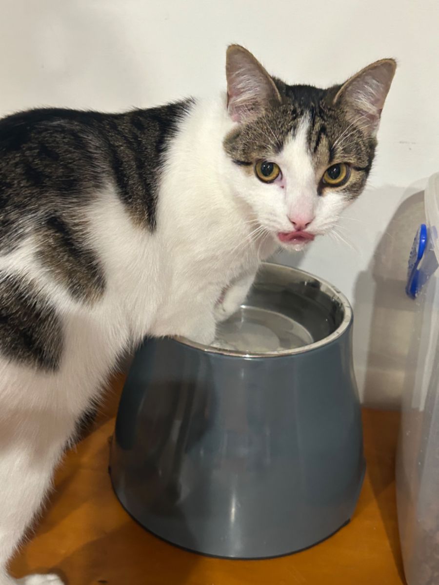 Sleeping on your bed or his cat tower, playing, exploring and eating are some of his favourite things.