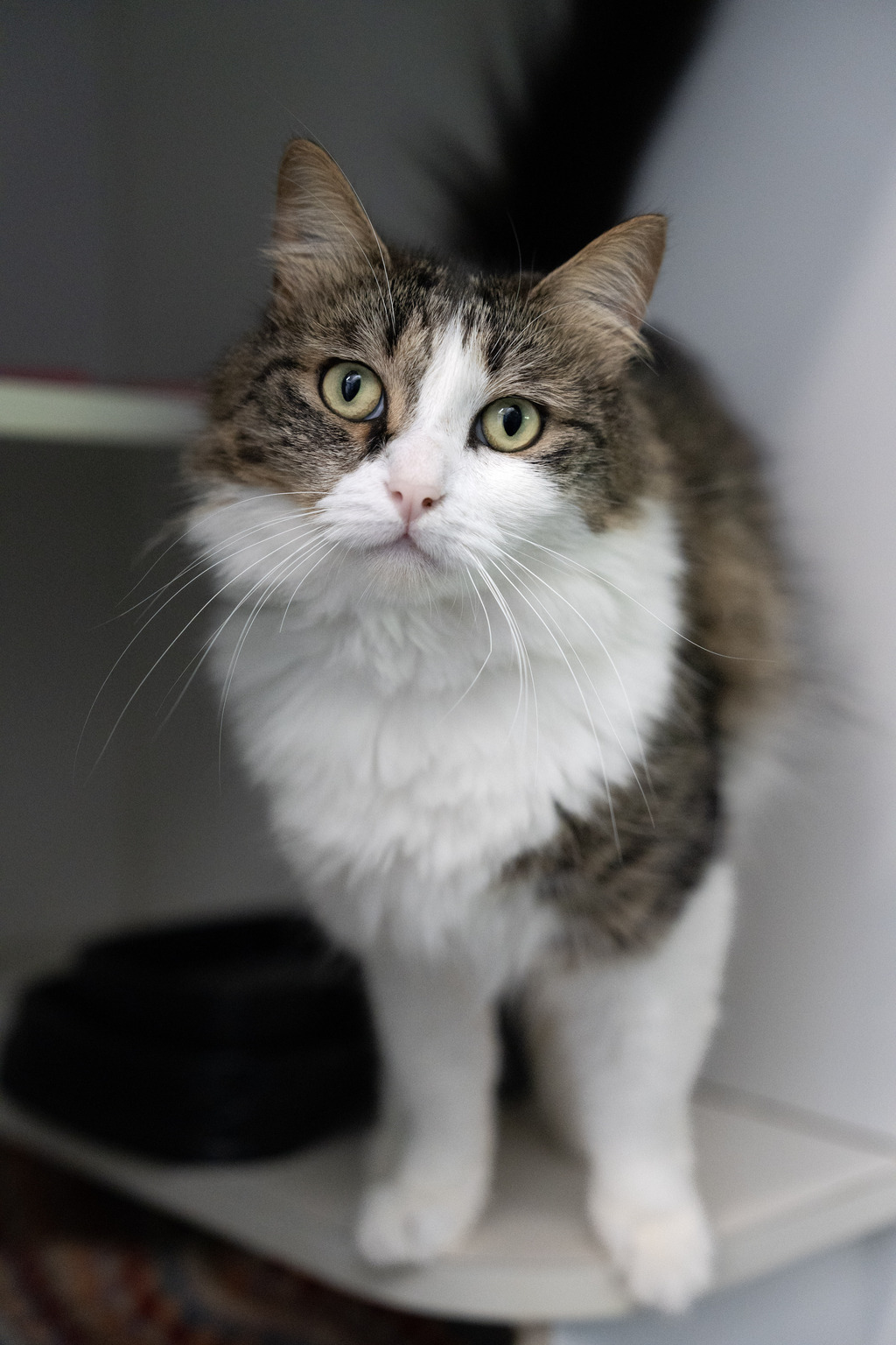 Beyond his quirks, Tales is a loyal companion who will happily curl up next to you, purring contently. If you're seeking a feline friend with a mix of sassy charm, a penchant for affection, and a love for good eats, Tales is the ideal addition to your home. Get ready for a life filled with laughter, love, and the delightful antics of this fluffy charmer. Adopt Tales, and let the adventures begin!