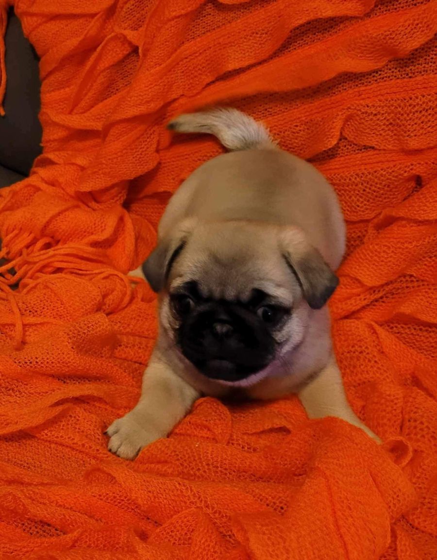 Get ready to meet our lovable goofball, Bonnie, a breathtakingly adorable 9-week-old pug ready to whisk you away into a world full of joy, giggles, and unforgettable memories. Bonnie has a flair for the dramatic, wearing her heart on her paw and offering a love so profound that you can't help but feel the immediate connection.
