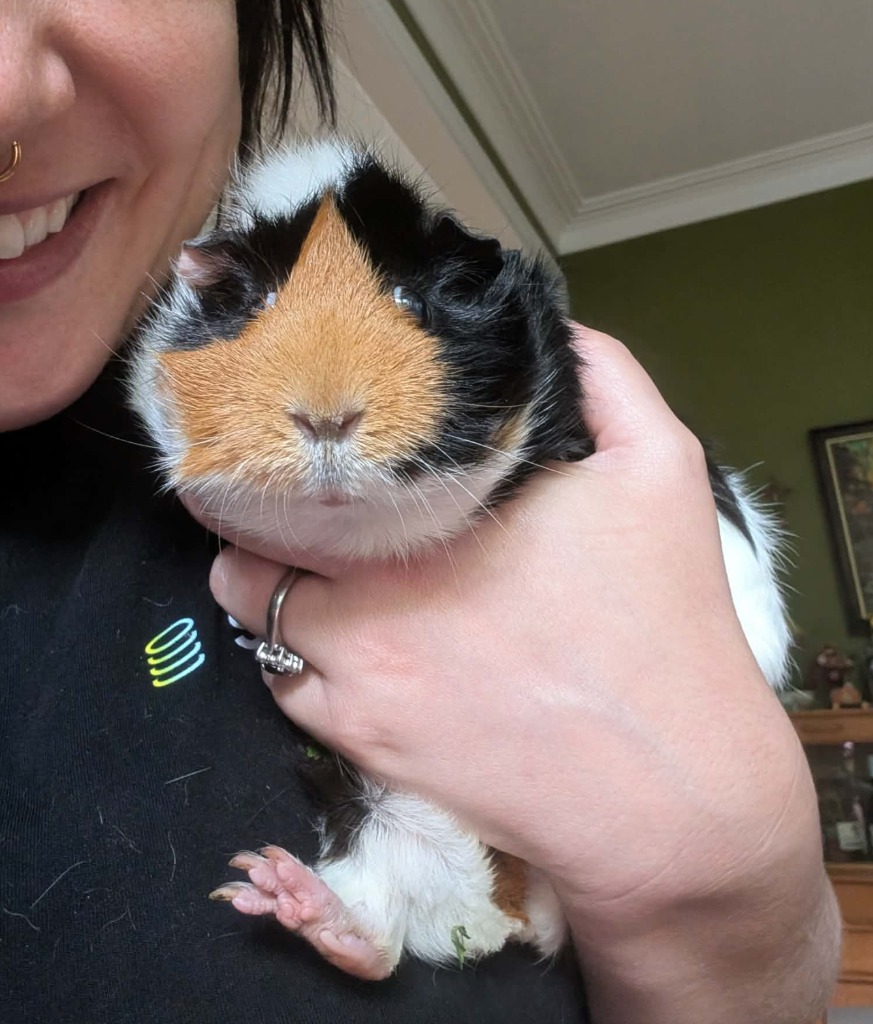 This lovely lady would thrive in a home with an existing desexed male or a female companion. Like all guinea pigs and prey animals they love people who can provide a gentle touch and understanding. While they may not become cuddly potatoes overnight, with time, patience, and love, they are sure to blossom into affectionate companions.