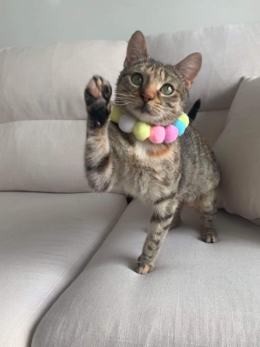 Buffy, aka the "Velcro cat," is your shadow, following you around with excitement and letting out big meows like, "Hey, you coming over for some quality cuddle time?" Her ultimate bliss is curling up on the couch or bed, soaking up all the love and attention you can dish out.