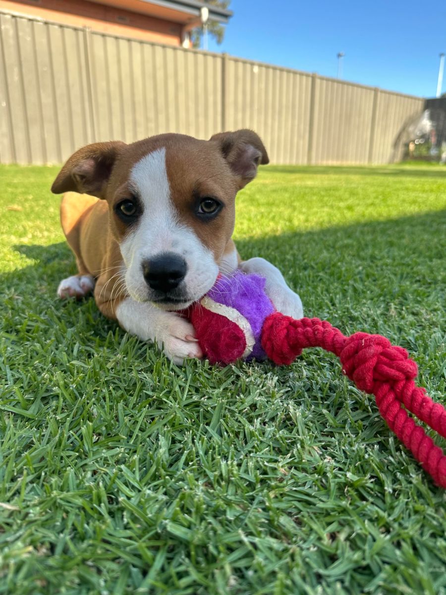 She loves playing tug of war or with any toy she can find, she is a nice calm girl for a puppy!