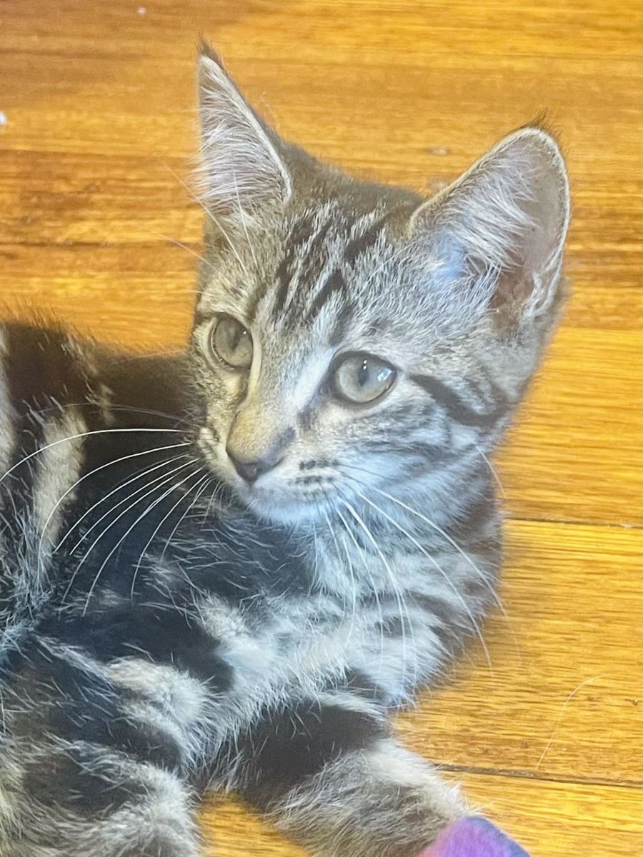 Hello there, world! I'm Isla, the sleek tabby sensation you didn't know you needed. I come with a side of beans – little peets that are just as lively as my spirit. Get ready, because I'm about to pounce on anything that moves, whether it's my mischievous siblings Imogen and Inigo or your unsuspecting ankles. I'm like a furry little ninja, stealthy and sneaky, always ready for the next adventure.