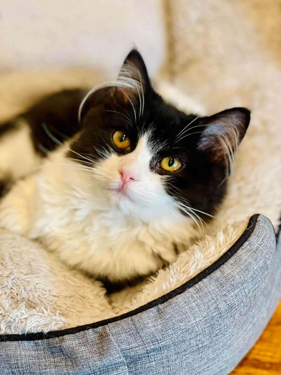 I'm a lover, not a fighter, and I adore people, other cats, and hey, maybe even a dog if they're cool. I'm all about making friends and spreading good vibes, three legs and all. Now, what I'm really hankering for is a home with another kitten friend. Why, you ask? Well, a three-legged cat like me needs a wrestling buddy, of course! Who said I can't do acrobatic moves with a little less leg? Not me!