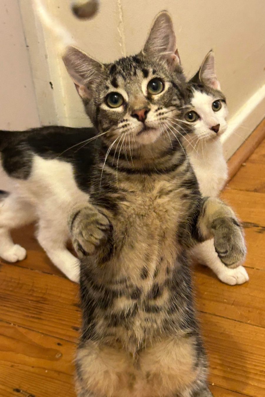 I am a friendly and playful kitten but I am also shy around new people. I can be homed with children and other cats. I haven't been tested with dogs. I must be kept strictly indoors only for my own safety.