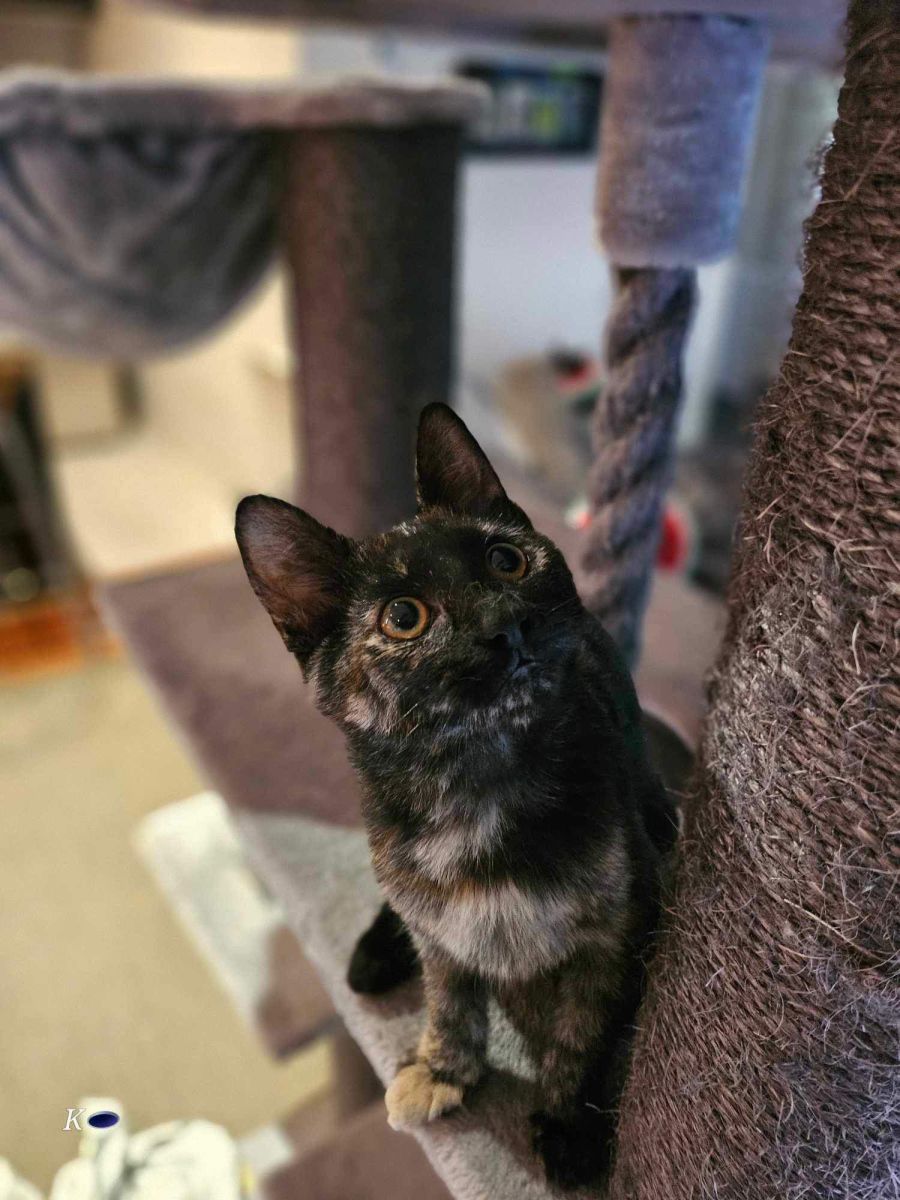 Greetings from Zephee, a charming, sociable lady waiting for you at the Petstock Carrum Downs store. She is a delightful tortoiseshell cat who is a sheer joy to be around. Her purrs will fill your ears and warm your heart, making her the ultimate companion for any family, pet lover, or individual wanting some additional joy in their lives.