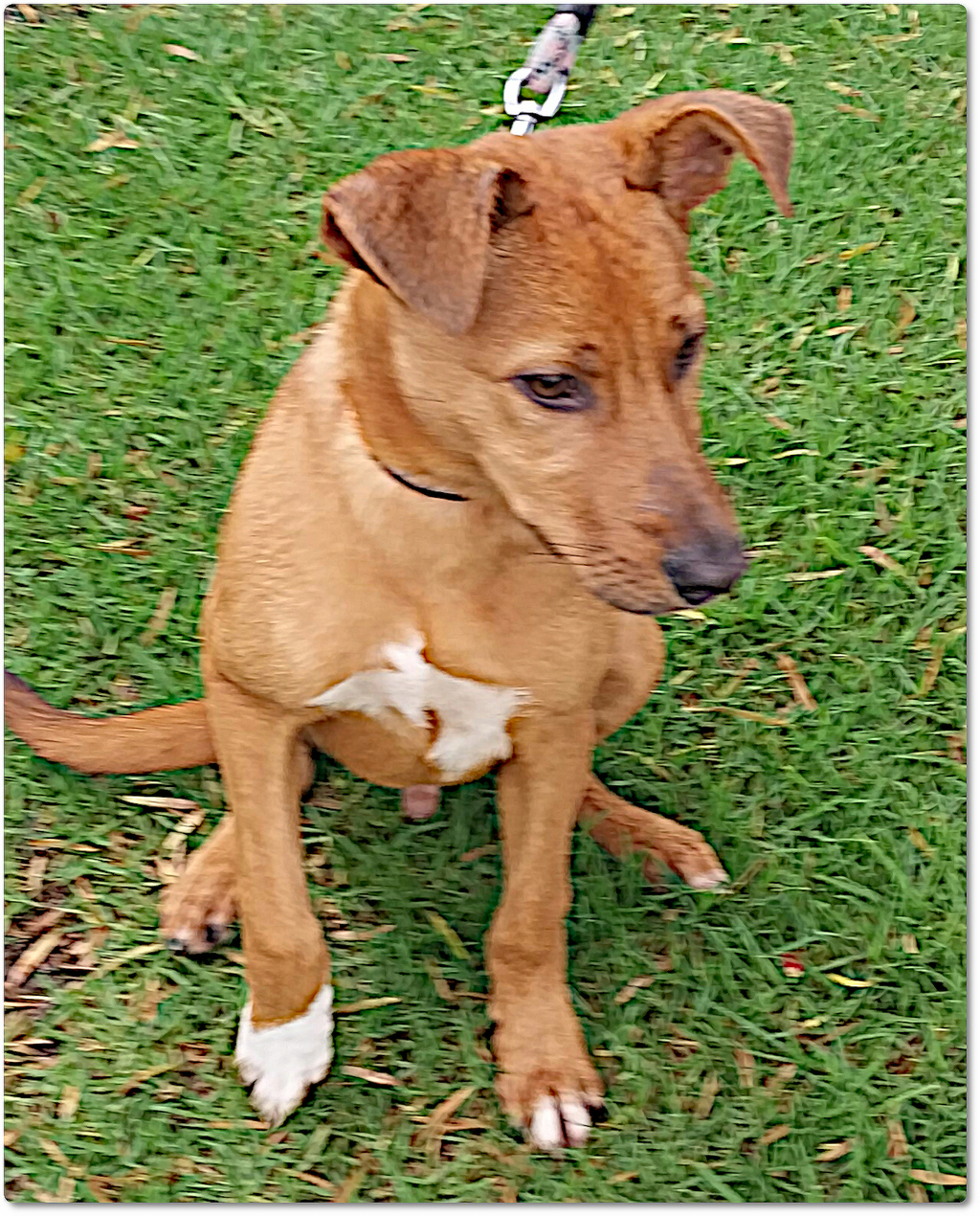 Everyone who meets Chips finds it hard to believe that he is so young. He is probably between 5 and 6 months of age and a Kelpie X. However, unlike most Kelpies, Chips is happy to just hang around and chill! He gets on with other dogs and humans of all ages. He is calm and loving and will make an amazing companion for any family.