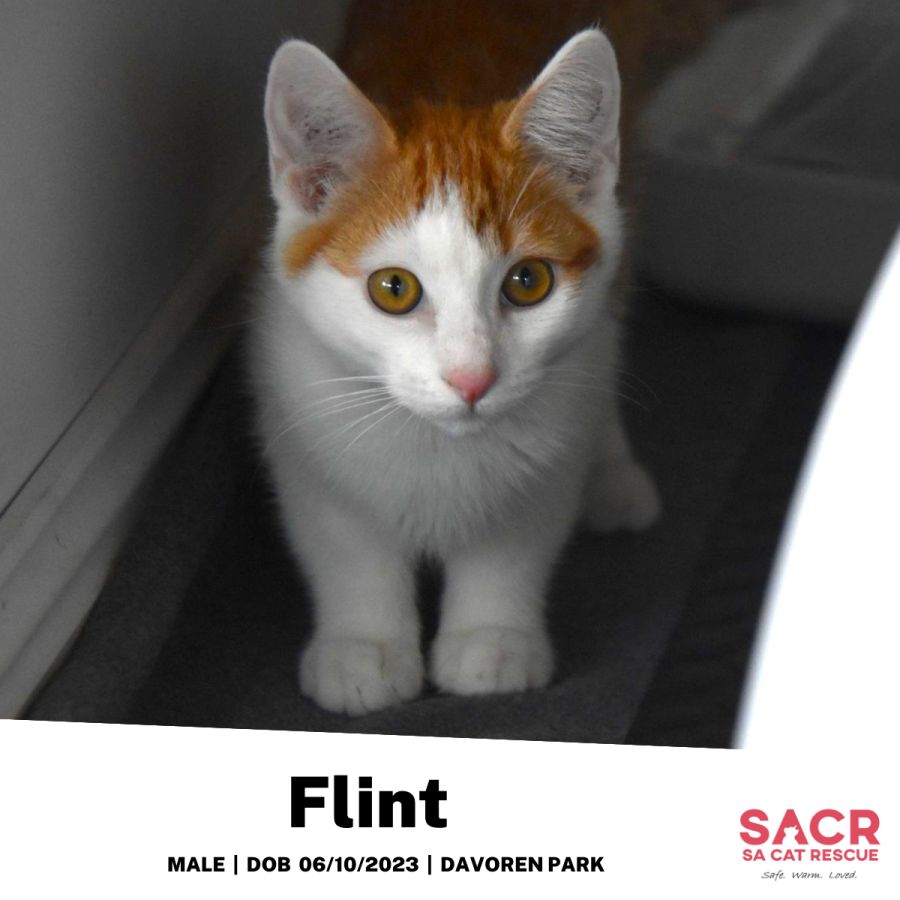 Flint’s adoption fee is $180 which includes desexing, microchipping, parasite prevention, and initial F3 vaccination.