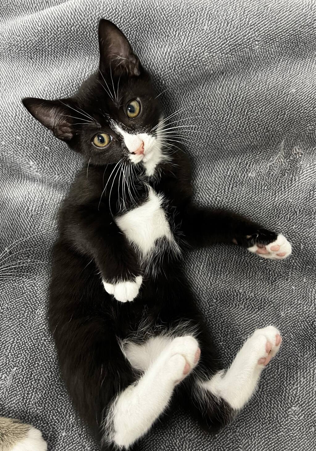 Meet Freddo, one in the group of kittens we have for adoption named after chocolate bars! We can think of nothing more sweet than chocolate. All the kittens in this litter are delightful kittens, well socialised with people, very playful and loving in their nature. Like chocolates, you may not be able to stop at one, so browse thru the litter and apply to adopt the sweetest kitties available. Currently in foster care in south west Sydney, Freddo is sensational tuxedo cat with a fun loving nature. We are taking applications now