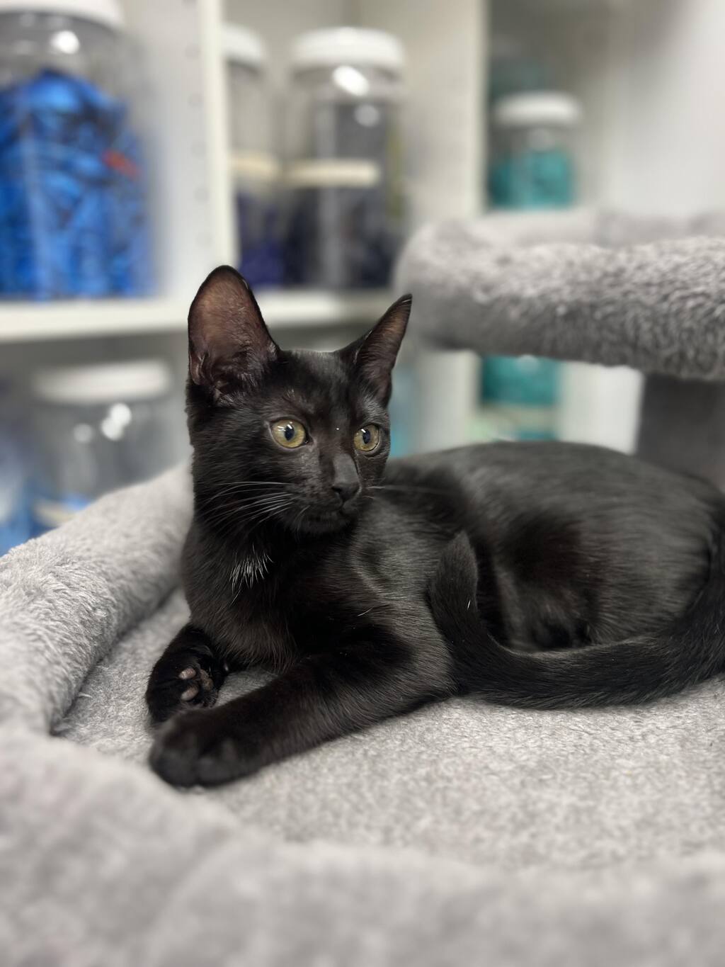 Meet Twirl, the remaining kitten from a group of kittens we had for adoption named after chocolate bars! We can think of nothing more sweet than chocolate. Twirl is very playful and loving in her nature. Twirl is still keeping her Mum PJ company in their foster home and while we would love to see them both rehomed together, we would also see them go it alone into their own forever home. Currently in foster care in south west Sydney, Twirl is a all black little panther with a small patch of white hairs on her chest that gets on with other cats. We are taking applications now for her adoption.