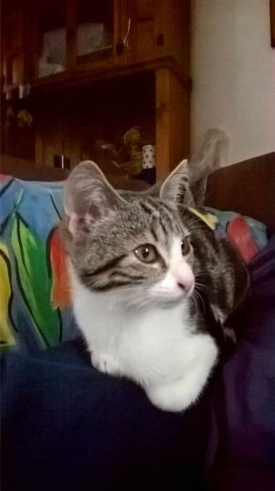 Mistle is a lovely combination of independence and cuddle kitten. She loves to explore, to play and to leave no level of the house unexplored. After this is accomplished, she is then happy to settle down in your arms for a cuddle and purr session. She settled boldly and readily into her foster home, and is becoming nonchalant around the dogs in the home. If you can offer a home that will embrace both that independent spirit and the sparkle of her smoochy times, you could be the purrfect furrever home for this little lass.