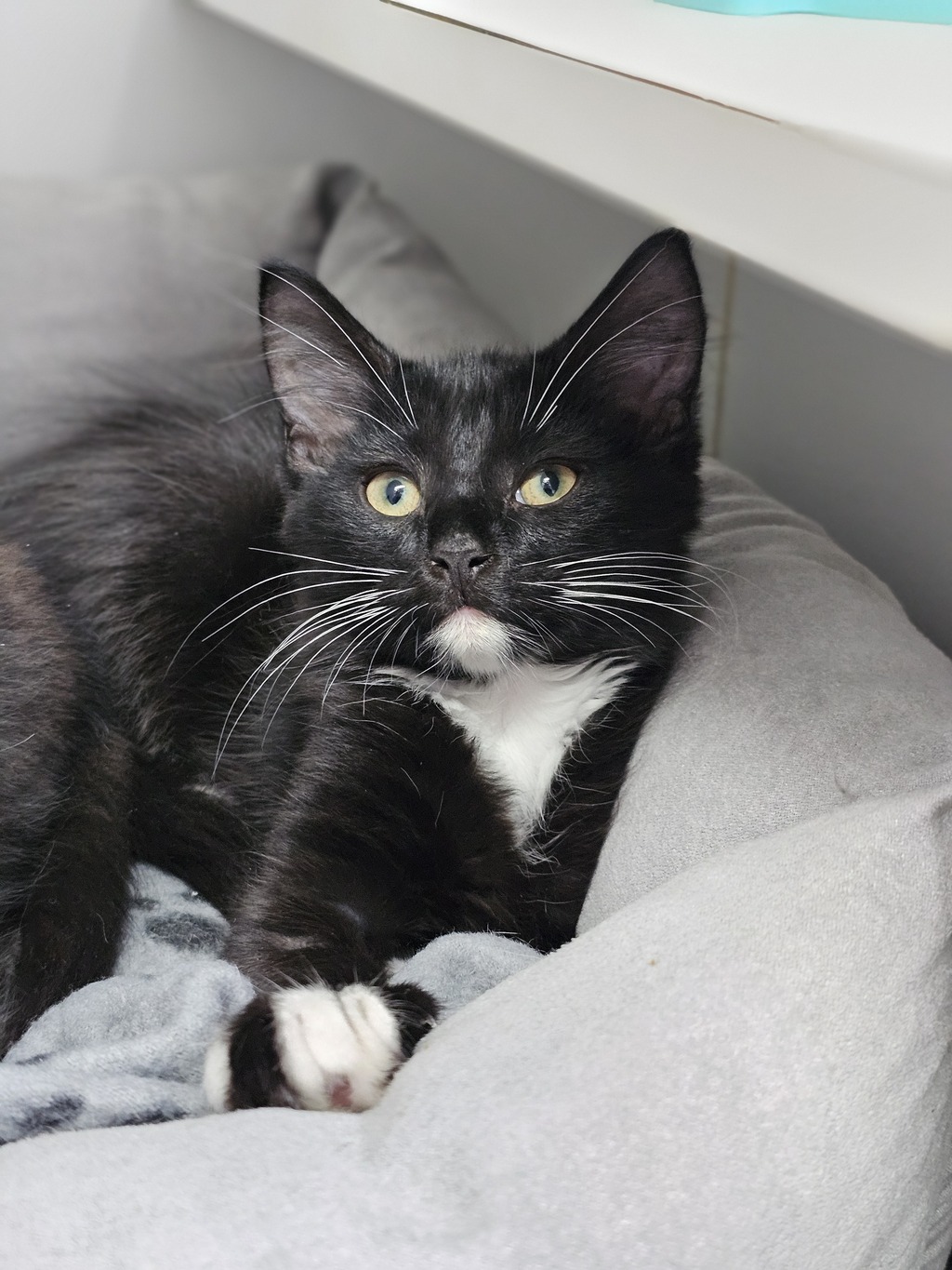 Hey there, I'm Potter. I'm a friendly and affectionate kitten who would suit most homes! My playful paws are always ready to pounce on anything that moves. I love playing with wand toys and mysterious shadows on the wall! When I'm finished playing, I love nothing more than finding a warm lap to curl up in.