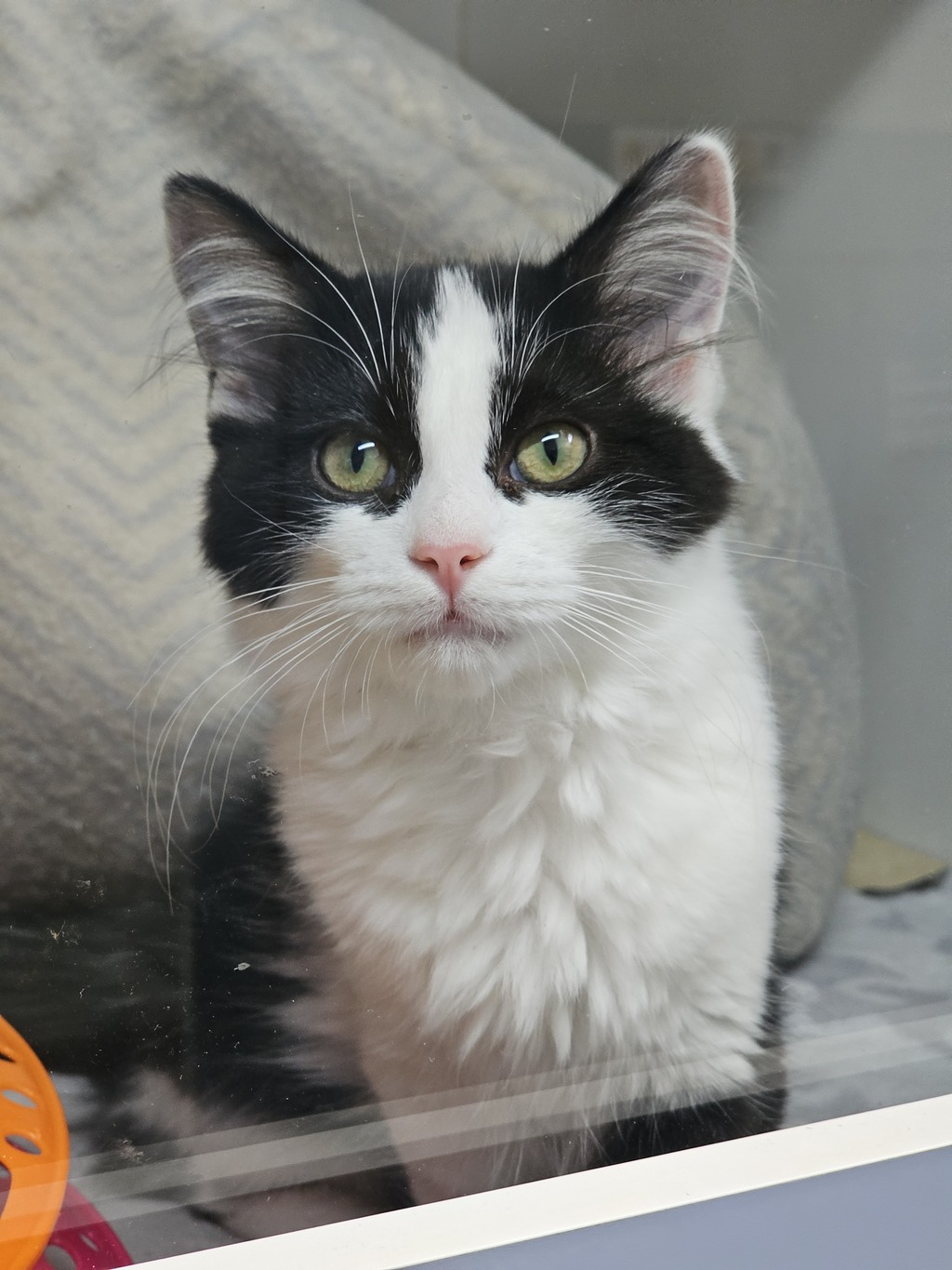 Hey there, I'm Panas. I'm a friendly and affectionate kitten who would suit most homes! My playful paws are always ready to pounce on anything that moves. I love playing with wand toys and mysterious shadows on the wall! When I'm finished playing, I love nothing more than finding a warm lap to curl up in.