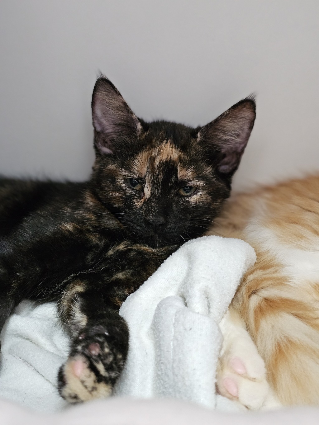 Hey there, I'm Rachel. I'm a friendly and affectionate kitten who would suit most homes! My playful paws are always ready to pounce on anything that moves. I love playing with wand toys and mysterious shadows on the wall! When I'm finished playing, I love nothing more than finding a warm lap to curl up in.