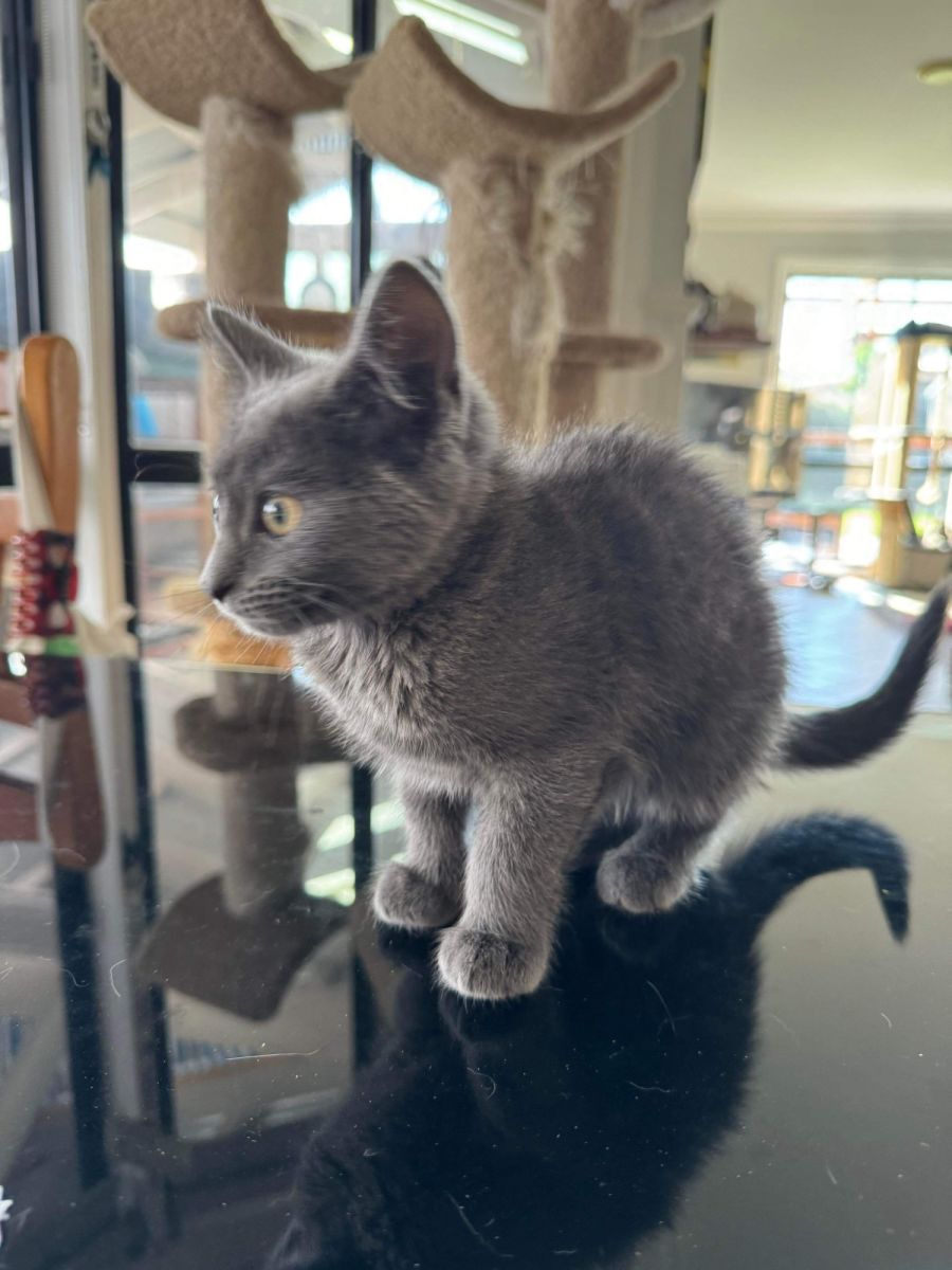 This lovable little cutie is full of energy! whether she's playing with her kitty friends, chasing a feather wand or playing with her humans, Dee is always up for a good adventure! That being said, you'll often find her perched in a sunny spot for her afternoon nap as she tends to tire herself out!
