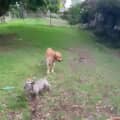 Simba is a little wary of strangers in his home, but a few treats will have him warming up to new faces in no time. He loves other dogs and plays well with them despite his size.