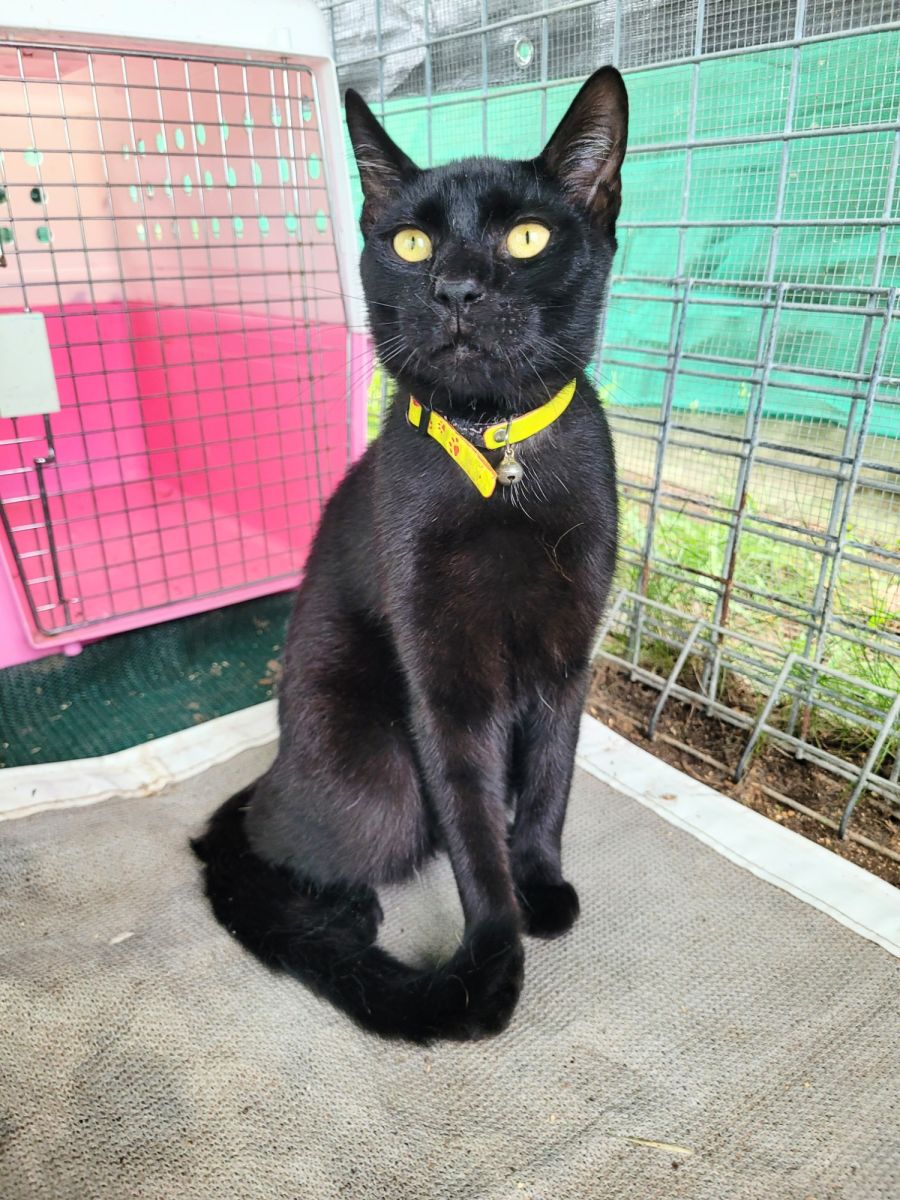 Ace is looking for his very own forever home. He is a very handsome black cat with brightly colored eyes. He loves to have a chat and will head butt into your leg for cuddles. He enjoys smooches and is always excited to find out what's for dinner. He is great with other cats and would prefer a adult family.
