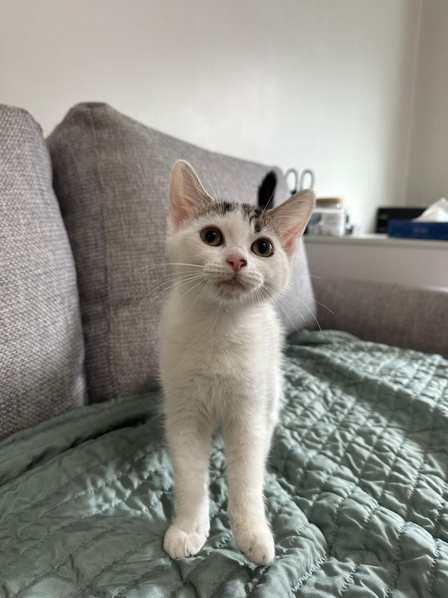 Macie came into our care with her sweet but shy brother Marco. Macie has been a very affectionate and cuddly little kitten from the get go and is the brave sister who is always first to test things out. She wouldn't take long to settle into a new home and will start exploring and seeing her new surroundings. She would settle in well with any family and would even love if her brother went with her too!