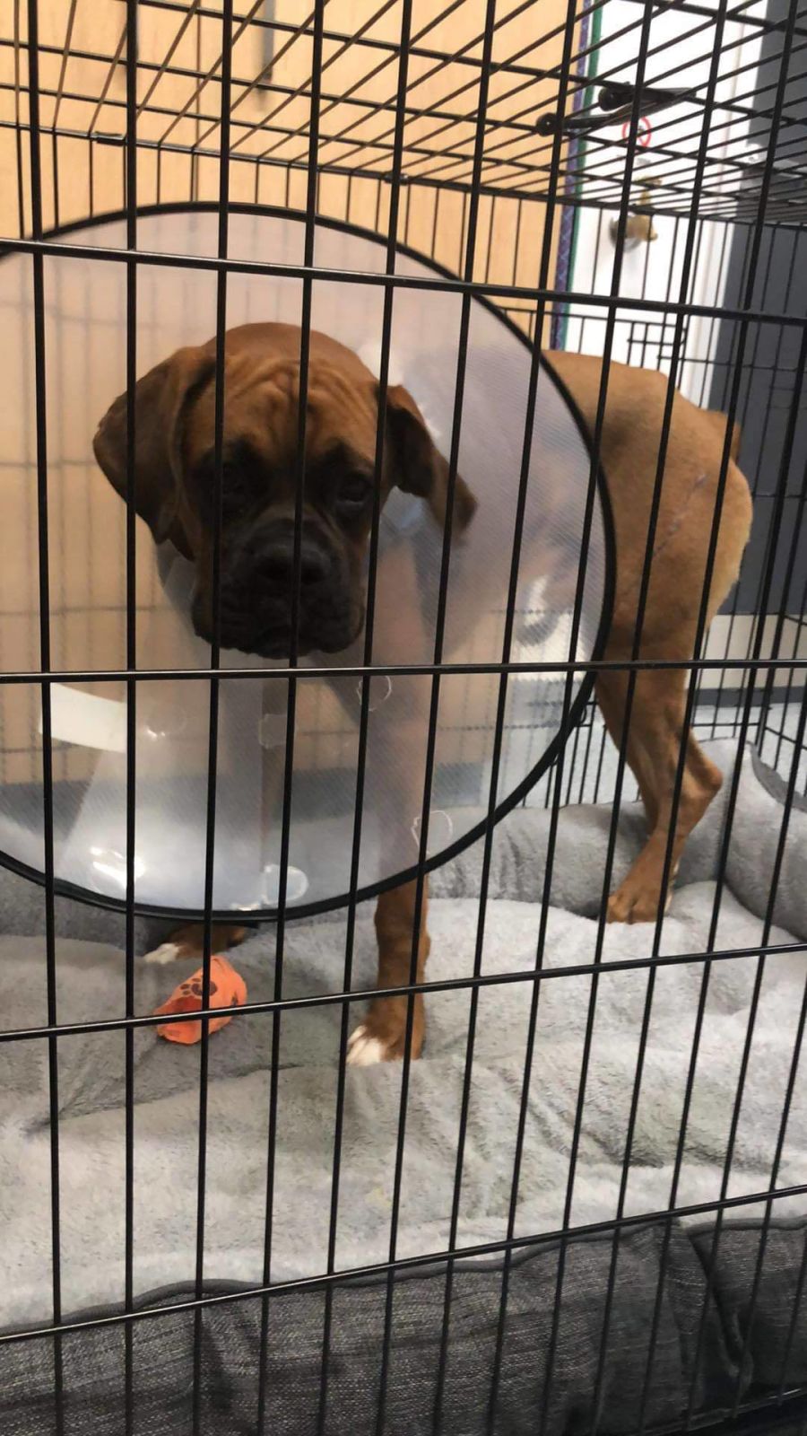 This is when rescue comes together - he has had his surgery and a new plate inserted - but.....he has nowhere to go and the vet cannot keep him!!!