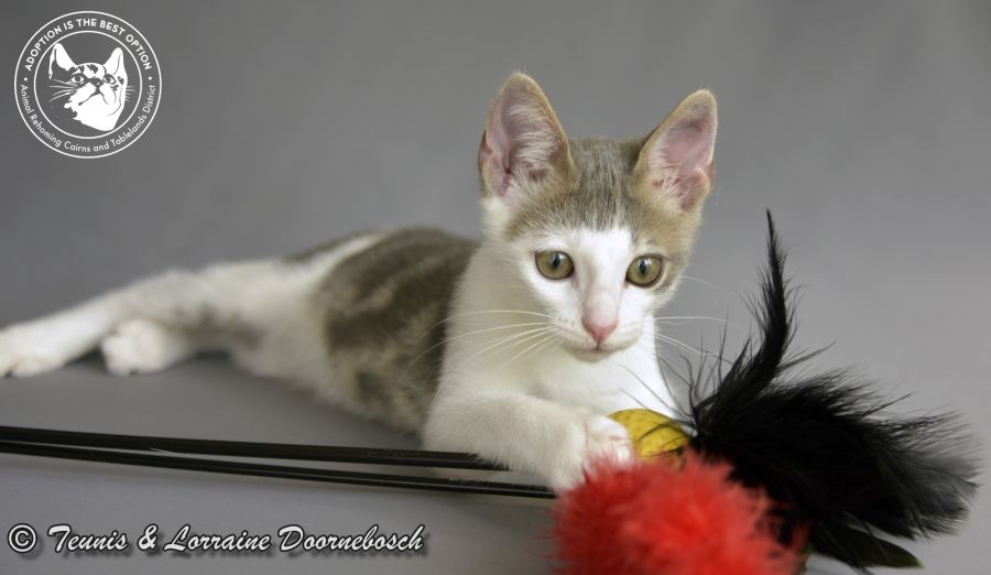 Percy and his mum were strays taken in by the lovely team at Ulysses Vet Clinics Cairns - Stratford & Whitfield and cared for while they searched for the owner. No one came forward, so they came to us for rehoming. Percy is such a character. He would play all day if he didn't need to nap occasionally and he's very good at entertaining himself, being the only surviving kitten. Surprisingly, even having fended for themselves for some time, Percy is not at all shy or afraid of people. In fact, he adores attention. When he's tired himself out he will be quite content with chin scratches, ear rubs and full-body strokes. Percy is very small for his age. A fun kitty who would soon adapt to any situation.