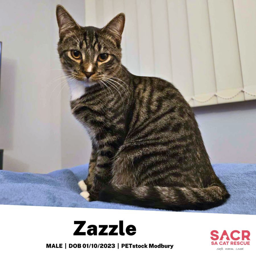 If you're looking for a charming, sensitive, and loyal companion to fill your home with warmth and feline charisma, consider giving this dazzling boy a chance. You're bound to discover that his name, Zazzle, perfectly captures his vibrant personality and ability to light up your life.