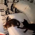 Oli and Estelle have been raised with dogs and are fine with cat-friendly dogs. Being bottle babies, they are very affectionate and social when the opportunity is there, but they are also very happy to play together when their humans are busy. They are happy to be the only two cats in the house, but also respect older cats.. Due to their small size, a home without children under ten is preferred. For the next 1-2 months, they still benefit from more frequent ( 3 -4) meals per day, and someone who has the possibility offer this would be ideal.