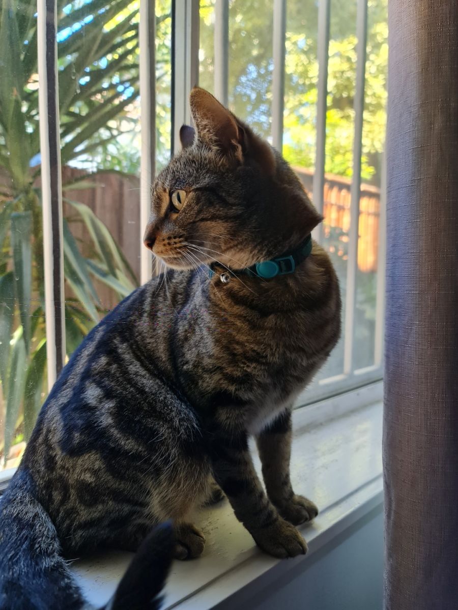 Sunny loves to hang out up high and watch the world go by when he's not having a cuddle. He also has the most adorable habit of burying himself under your covers and looking all sweet and innocent when you find him.