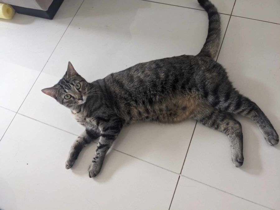 Amanda (Grey Tabby) is the quieter of the pair, but gosh does she have a sweet little mew. She pokes her head in and out of the hidey hole to see who’s about and then comes out if there’s love on offer. She will sneak tidbits if able and loves to drink from the shower (so move on over). She’s a girl who will follow you to the bathroom, because if you’re sitting it’s time for pats.
