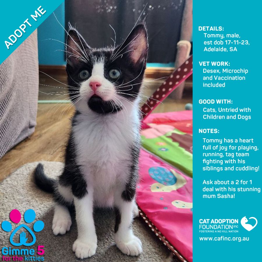Donate to Tommy at Cat Adoption Foundation Incorporated via Shout