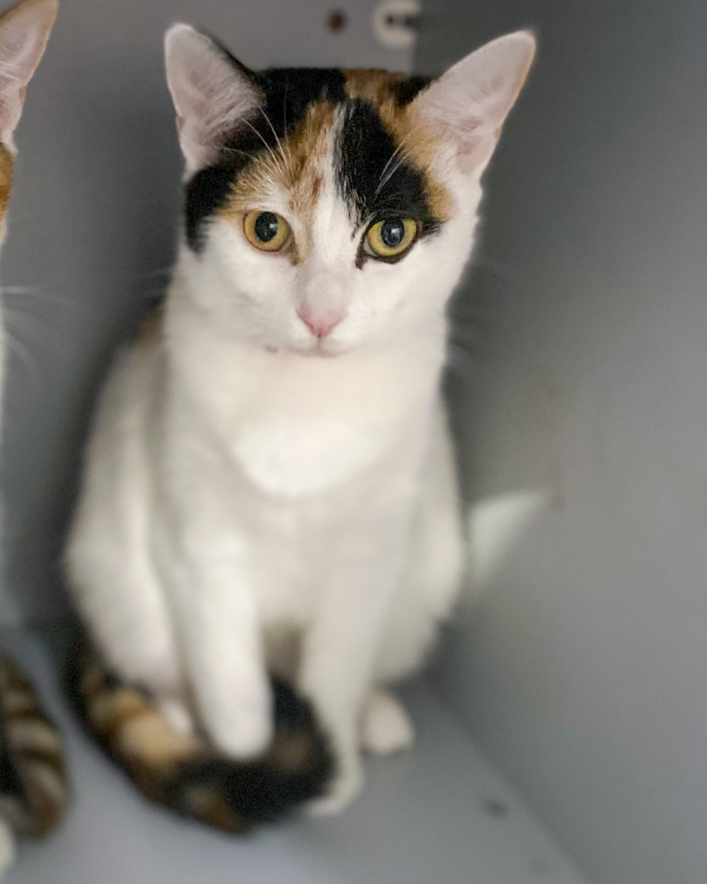 Looking for a furry companion who will steal your heart? Look no further than Ruffles, our sweet calico kitten!