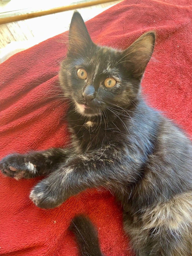 If you like your cats dark and mysterious, but still friendly and cuddly and playful... then Robbi is the girl for you. She has the dark tortie magic that discerning cat guardians love and appreciate. This girl loves to be involved with everything your doing and can be found sleeping on your bed, your laptop, your couch... her one ginger back paw makes her utterly unique and her soft long fur is just a delight to stroke. Robbi will cast a spell on you, submit an enquiry now to meet her!