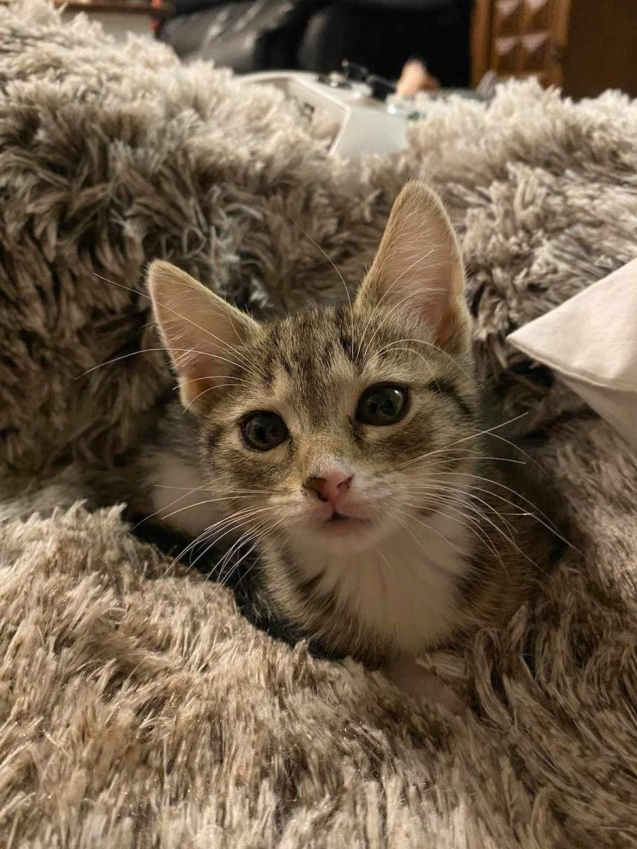Introducing the delightful Sadie, an adventurous tabby with a white dash that perfectly compliments her bubbly personality. Born on 30th October 2023, Sadie has such a zest for life, it's contagious!
