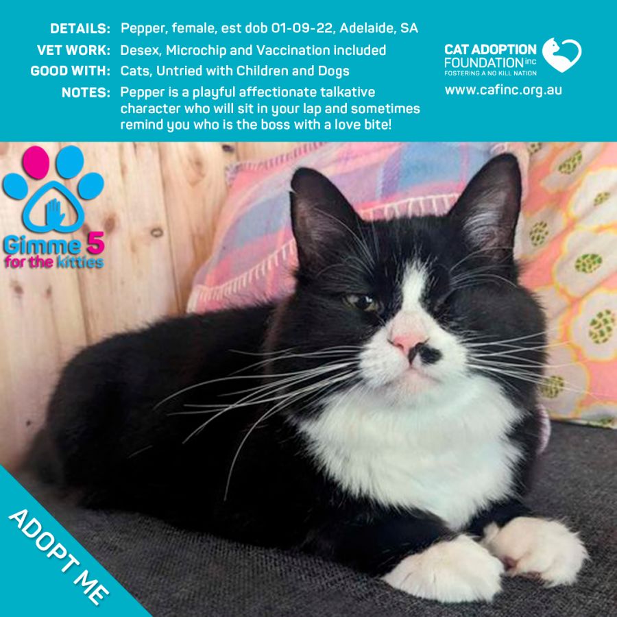 To adopt this kitty please contact Sayla on 0422 652 837 or email us at info@cafinc.org.au.