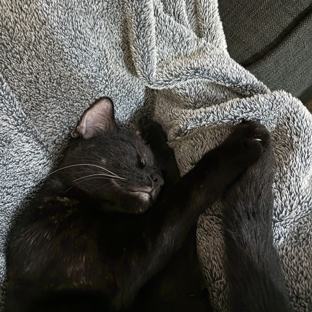 My name is Thyme, and if you’re looking for a cuddle buddy – then I’m your girl. I can be shy, so might take a little while to warm up to new faces, but once I get comfortable, I love having a play with my humans or any feline foster siblings.